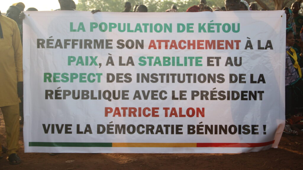 Cadre politique à Kétou, Ezin Gilles Zoungue a, pour sa part, insisté sur la nécessité de préserver l’ordre constitutionnel et de rejeter toute tentative d’importation de modèles politiques étrangers au contexte béninois. « C’est l’ordre constitutionnel qu’il faut promouvoir. Les élections sont déjà engagées et doivent se tenir dans de bonnes conditions. Toute la population de Kétou soutient le président en exercice jusqu’au terme de son mandat », a déclaré l’homme, appelant à la prière et à la mobilisation collective pour la paix.
